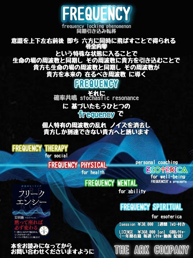 フリークエンサー・ライセンス・コースはジ・アーク・カンパニーの安田隆先生の直接指導を受けられるコースです。